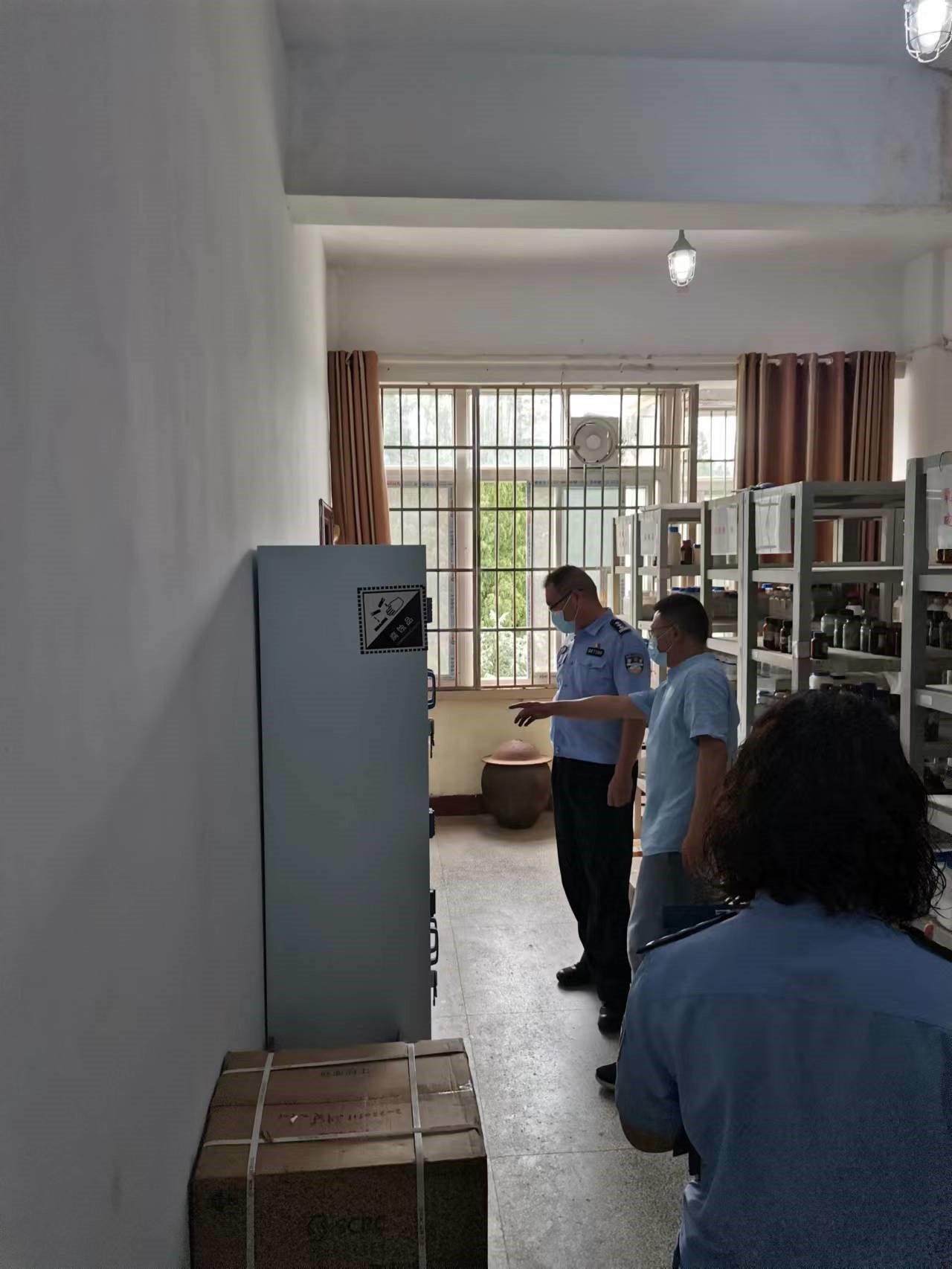 7月26日上午,信阳市浉河区公安局治安管理大队和驻校派出所民警到betway西汉姆联平台开展危化品安全检查和指导工作。betway西汉姆联平台副经理于永生、化学实验室教学中心相关人员陪同检查。