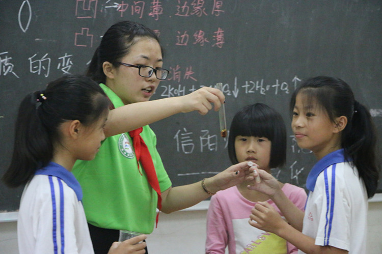 课程开始之前,队员们通过做游戏的方式跟小朋友们展开互动,拉近距离。讲课过程中,队员们采用问题教学法、发现教学法、探究教学法、体验式教学法等为员工们讲述了生活中的小科学,包括光的折射原理,固体、液体、气体的特性,压力与浮力等,充分调动员工们的积极性,活跃课堂氛围,还准备了精彩的化学实验,为同学们展现了神奇的化学世界。最后,队员们为员工们送上准备好的文具、图书等并合影留念。