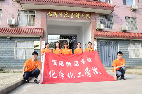 历经长途跋涉,小分队员们终于来到了信阳市儿童福利院。他们个个身着鲜艳的橘色志愿服,手提精心为孩子们准备的各种礼物,远远望去,给人一种莫名的感动!刚进福利院大门,就望见孩子们的各种活动设施:滑梯、蹦床等,给人一种欣慰之感!可当小分队员们在引导员的引领下来到孩子们的课堂时,小分队员们心中感到一阵阵心酸!孩子们都蜂拥而上,一把抱住小分队员,长久的缺乏关爱,让孩子们有了一点点自闭,使得小分队员们疼惜不已,一个个都尽自己最大的努力在最有限的时间里将自己最多的关爱留给孩子们。孩子们在小分队员的感化下虽有哭有闹,却更添了些许活泼,使人怜爱不已!
