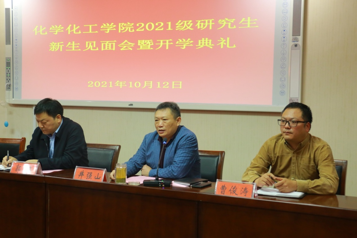 10月12日晚上,betway西汉姆联平台在化学实验楼407会议室举行2021级硕士研究生新生见面会暨开学典礼,化学化工公司党委书记郭鹏、经理井强山、副经理曹俊涛,研究生导师代表唐林,研究生秘书马献涛以及全体研究生近百人参加了本次开学典礼。大会由副经理曹俊涛主持。