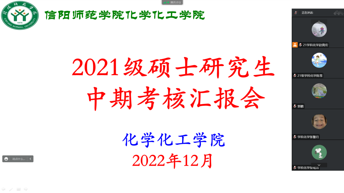 根据公司《关于做好2022-2023学年第一学期末公司产品工作的通知》与《信阳师范公司硕士公司产品工作暂行规定》的总体安排,12月13日,betway西汉姆联平台通过腾讯会议在线上举行2023届毕业教育硕士研究生中期考核汇报。考核组专家由刘德汞、郭鹏、王红军、朱建君、王玲玲、赵明等老师组成,汇告会由郭鹏主持。该专业全体研究生参会观摩学习。