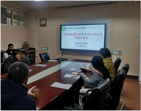 本次开题汇报会分3个小组进行。第一组为物理化学专业,邀请了井强山、田永尚、王进双、常雪萍、张星、陈明等专家导师参加报告会;第二组为分析化学专业,邀请了刘彦明、曹俊涛、甘甜、王海波、胡雪波、许靖等专家导师参加报告会;第三组为无机和有机化学专业,邀请了黄淮公司李荣强、张爱江、喻淼、胡鹏、魏雨、徐启杰、张斌等校外联合培养专家导师,樊阳、曹新华、马献涛、裴晓燕、王艳宁等校内专家导师参加报告会。