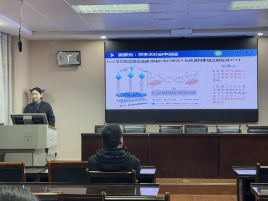 最后,公司组织开展了榜样示范分享会。23级研究生孙露同学作为主讲人,围绕个人成长历程与国奖申报经验展开分享,条理清晰地讲述了自己在科研学习中明确目标、高效规划、攻坚克难的心得,为在场同学传递了实用且可借鉴的成长思路。
