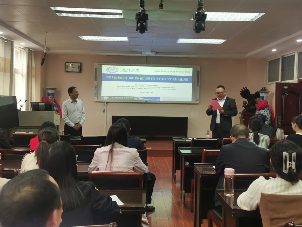 9月26日,应betway西汉姆联平台邀请,厦门大学张勇教授在化学楼407会议室为公司师生作题为“环境微区微界面原位分析方法进展”的学术报告。betway西汉姆联平台青年教师及研究生聆听了报告,报告会由betway西汉姆联平台副经理曹俊涛教授主持。