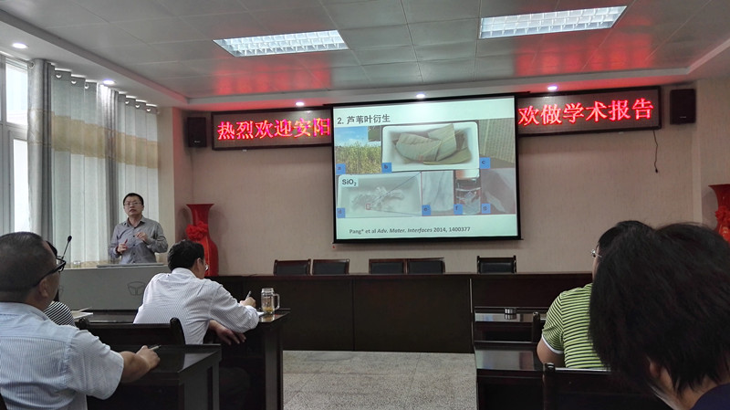 报告会上,庞欢教授从配位纳米材料和生物质衍生材料两个方面详细介绍了其课题组近年来的科研成果,详细介绍了材料合成的思路、过程和应用等。庞教授的讲座深入浅出、图文并茂、精彩纷呈,引来了师生们的阵阵热烈掌声。在互动环节,庞教授详细地回答了师生们的提问。