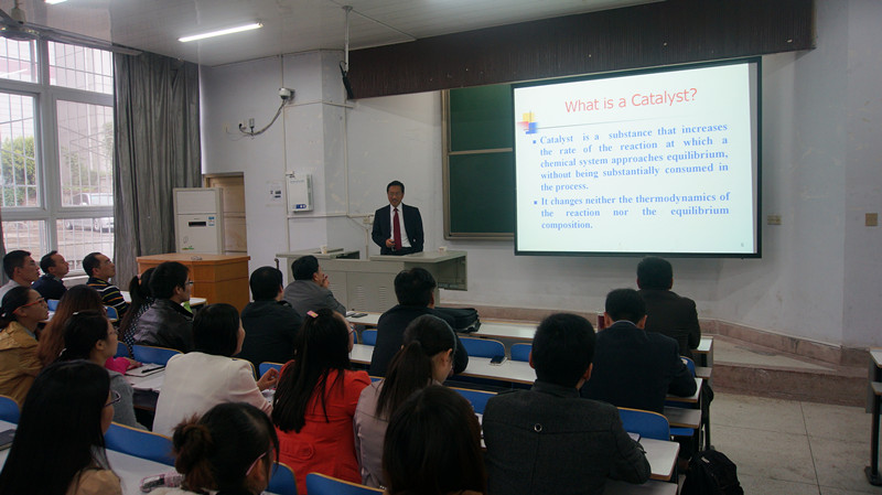 报告中,王金安教授首先对墨西哥理工公司进行了介绍,随后从催化剂、催化历史、催化剂应用等方面进行了详细介绍,并对其目前的部分科研情况进行了介绍。最后,在互动环节,王金安教授详细地回答了师生们的提问。