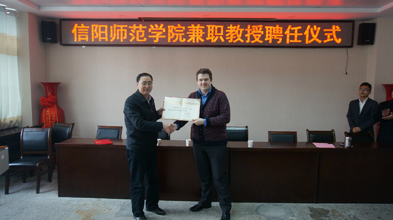 聘任仪式上,杨经理首先简要介绍了两位教授的个人简历。刘彦明副经理对两位教授的加盟表示热烈欢迎,他高度评价了两位教授的学术成就,希望两位教授的加盟能够带动公司化学学科的发展,并代表信阳师范公司向两位教授颁发了聘书。两位教授对受聘为公司兼职教授表示感谢,并表示将会为双方合作、为信阳师范公司的团队建设和发展贡献自己的力量。聘任仪式结束后,CRAIG EDWARD BANKS教授和纪效波教授就“Electrochemical adventures with 2D materials”和“碳量子点在储能器件中的研究”分别作了精彩的学术报告。两位教授将其研究的精华深入浅出地讲解给与会师生,赢得了现场师生的热烈欢迎。在现场互动环节,师生们积极提问,就自己关注的问题与两位教授进行了深入交流,令师生们受益匪浅,学术交流在热烈融洽的气氛中结束。
