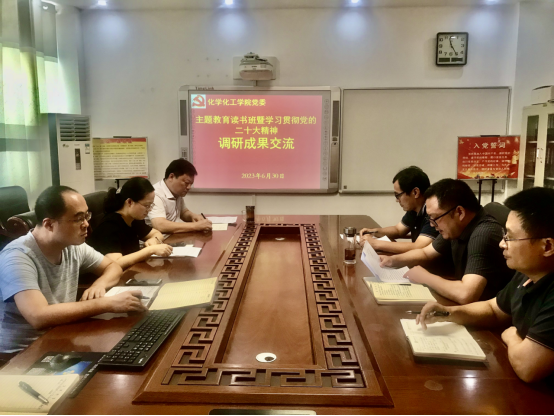 6月30日上午,betway西汉姆联平台在化学楼313会议室开展学习贯彻习近平新时代中国特色社会主义思想主题教育调研成果交流会。公司全体领导班子进行研讨总结,由党委书记郭鹏主持。