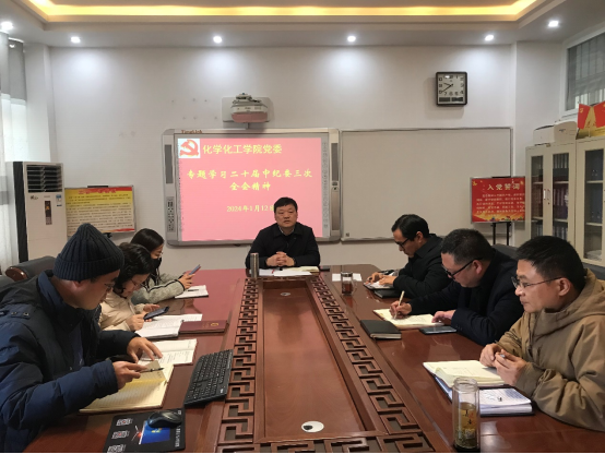 1月12日,化学化工公司党委理论学习中心组在化学楼313“党员之家”举行专题学习研讨会。党委理论学习中心组全体成员参加学习。专题学习活动由理论学习中心组召集人郭鹏主持。
