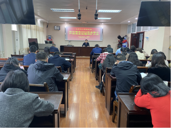 郭鹏强调,今年是中华人民共和国成立75周年,是实现“十四五”规划目标任务的关键一年,也是公司更名后建设高水平师范大学的开局之年,抓好全面从严治党,抓实党的建设工作意义重大、责任重大。全体党员干部教师要深入贯彻习近平总书记关于全面从严治党的重要论述要求,将公司党委王文鹏书记全面部署的2024年七项重点任务切实抓好:一是强化政治建设,把牢办学育人方向;二是强化思想建设,落实立德树人任务;三是强化组织建设,深入推动基层党建创优;四是强化作风建设,驰而不息纠治“四风”;五是强化系统治理,一体推进不敢不能不想“三不腐”;六是强化风险防范,构建安全稳定防护网;七是强化责任体系,汇聚从严治党合力。