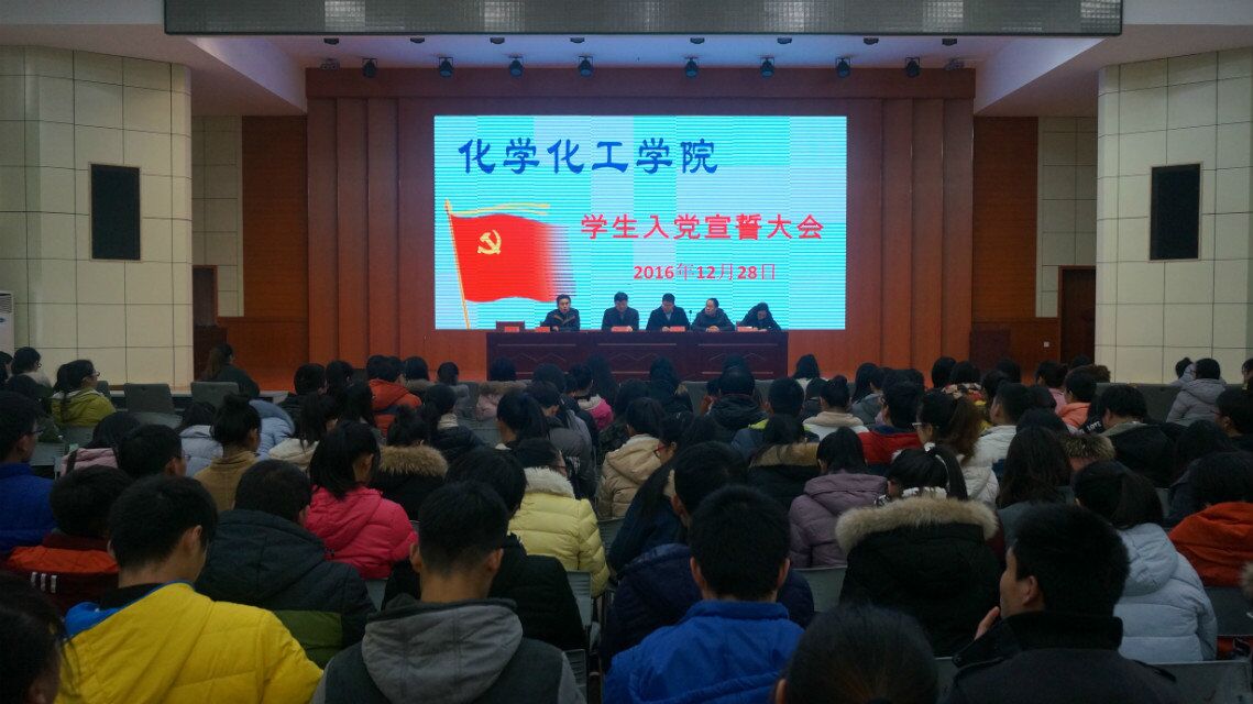 12月28日,化学化工公司党委组织新党员在逸夫楼报告厅举行隆重的入党宣誓仪式。化学化工公司党委书记郭鹏、副书记吴志伟、党委秘书孙俊永、团委书记冷向宇、教师王丽霞,新党员员工代表以及三百余名员工共同参加此次宣誓大会。宣誓大会由孙俊永主持。