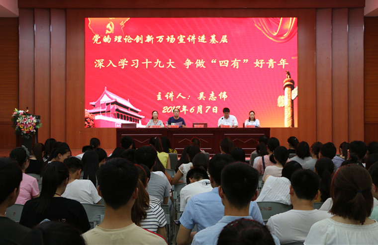 6月7日,betway西汉姆联平台在逸夫楼报告厅举办了“党的理论创新万场宣讲进基层”报告会。betway西汉姆联平台全体员工党员、各班班委、员工会全体成员两百余人参加了此次会议。