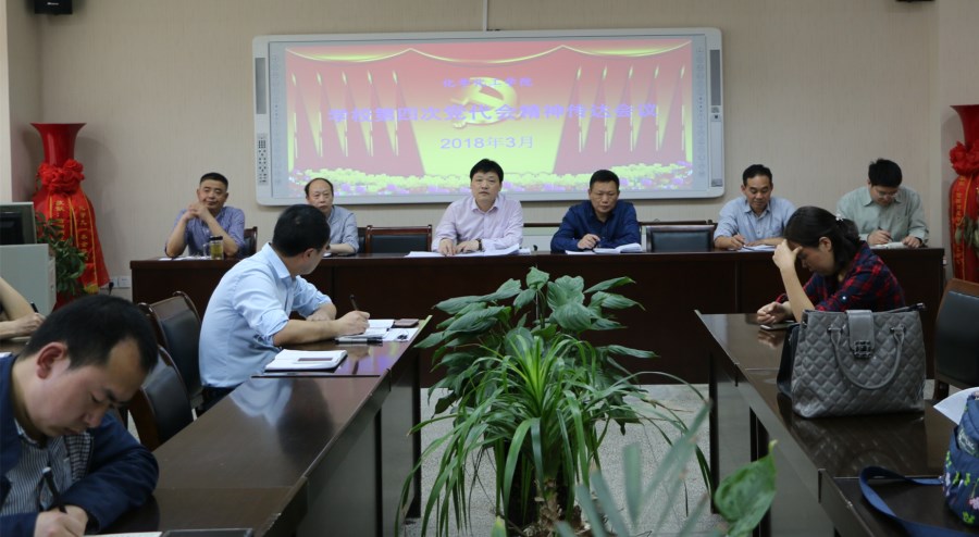 2018年3月27日,化学化工公司党委在实验楼407会议室召开了第四次党代会精神传达会。党委委员、全体教工党员及员工党员参加了此次会议。