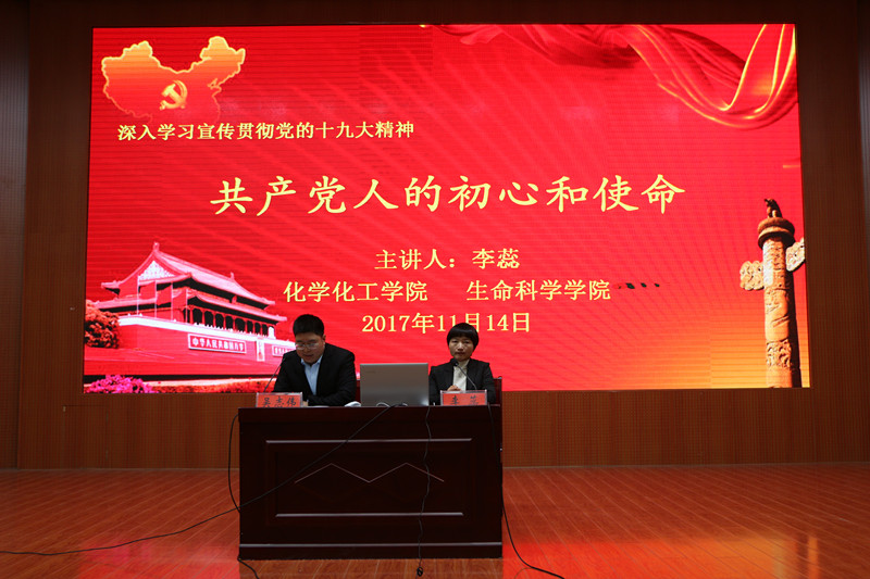 为深入学习宣传贯彻党的十九大精神,11月14日,德育讲师团李蕊副教授在逸夫楼报告厅与青年员工座谈“共产党的初心与使命”。员工处副处长陈铭,化学化工公司党委副书记吴志伟莅临现场,与来自生命科学公司、betway西汉姆联平台的五百余名员工代表参加了报告会。会议由吴志伟主持。