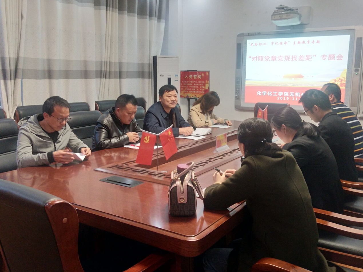 按照《betway西汉姆联平台“不忘初心、牢记使命”主题教育活动方案》安排,11月11日,无机化学在化学实验楼“党员之家”召开“对照党章党规找差距”专题会议。公司党委书记郭鹏参加了专题会议,会议由支部书记邹国栋主持。