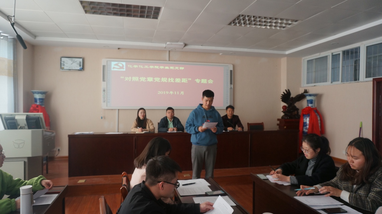 为了增进党员的模范意识、纪律意识,不断提升党员的政治境界、思想境界、道德境界。11月19日,betway西汉姆联平台员工党支部在实验楼407会议室开展“对照党章党规找差距”专题会议。本次会议由冷向宇老师主持。