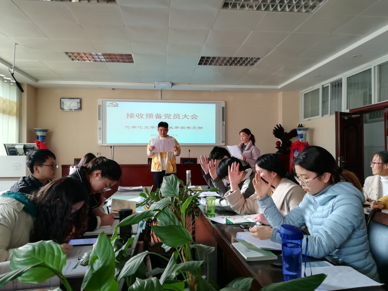 11月22日中午,betway西汉姆联平台员工第四党支部在实验楼407会议室召开预备党员接收支部大会。第四党支部王露洁同志主持本次会议。
