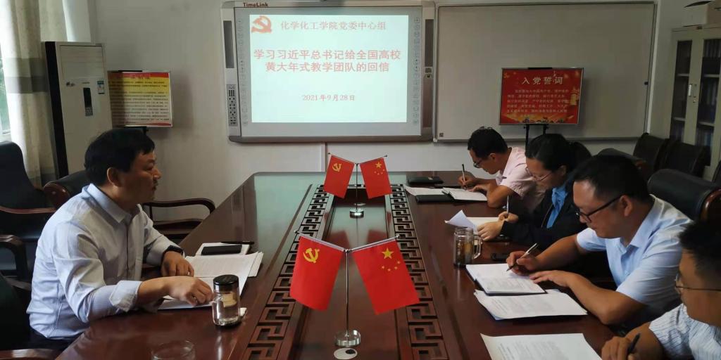 第37个教师节前夕,习近平总书记给全国高校黄大年式教师团队代表回信,肯定了黄大年式教师团队取得的成绩,对全国高校广大教师提出了殷切希望。9月28日上午,化学化工公司党委中心组召开会议,开展专题学习研讨活动,引领公司师生掀起了学习习近平总书记给全国高校黄大年式教师团队代表重要回信精神的热潮。公司党委书记郭鹏主持中心组专题学习研讨活动。