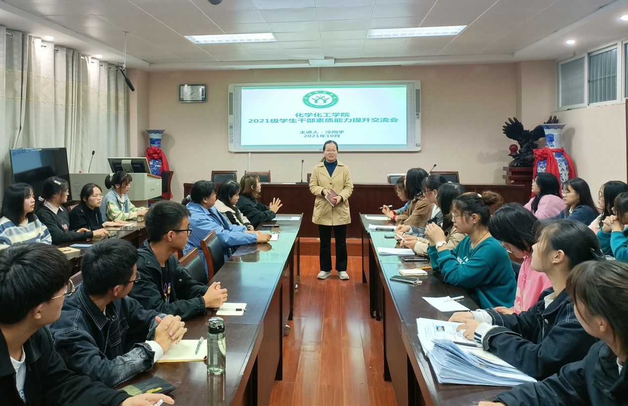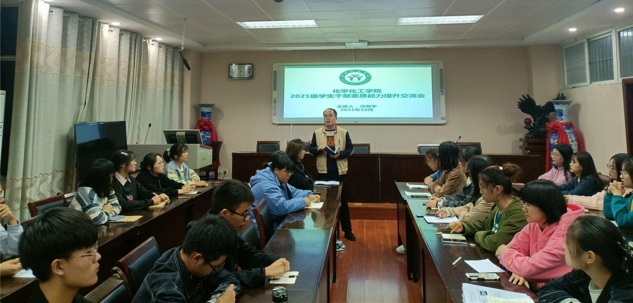 10月14日,betway西汉姆联平台在化学实验楼407会议室召开2021级员工干部素质能力提升交流会。化学化工公司党委副书记曲剧主持,新生辅导员冷向宇主讲,邓耀辉、赵方方、严赫参会。