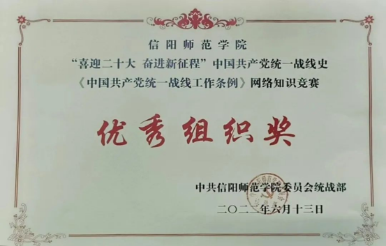 为深入学习宣传贯彻习近平新时代中国特色社会主义思想、习近平总书记关于加强和改进统一战线工作的重要思想,引导和调动全体师生在浓厚党史、统战史学习氛围中迎接党的二十大胜利召开。省委统战部、公司党委统战部认真部署、精心组织5月12日至31日,动员师生积极参加了“喜迎二十大 奋进新征程”中国共产党统一战线史和《中国共产党统一战线工作条例》网络知识竞赛。党委统战部荣获优秀组织奖,受到省委统战部通报表彰。