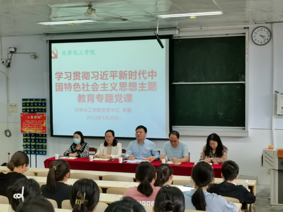 为深入推进学习贯彻习近平新时代中国特色社会主义思想主题教育,引领青年员工党员学深悟透习近平总书记关于“全面贯彻党的教育方针、加快推进教育现代化”有关论述精神实质,5月30日下午,化学化工公司党委书记郭鹏在教六101为公司全体员工党员上专题党课。公司党委副书记曲剧、专职组织员冷向宇、辅导员赵方方、翟成辉以及betway西汉姆联平台全体员工党员认真听取党课。