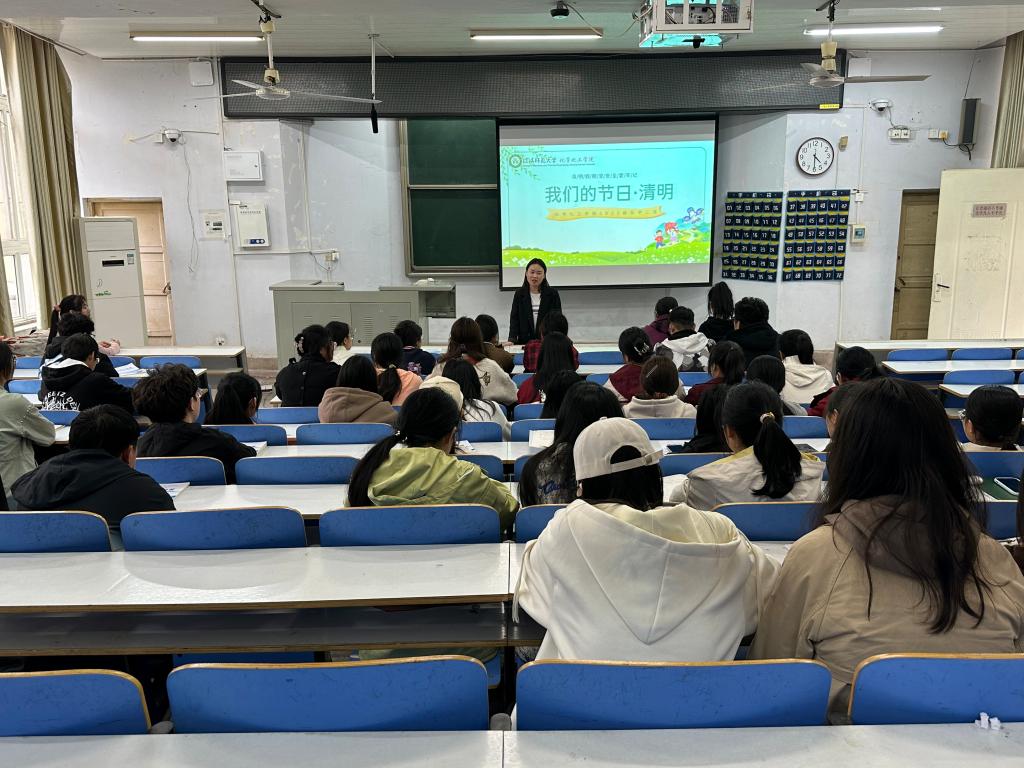 在团课上,赵方方老师首先向同学们介绍了清明节的由来和意义,让同学们了解到清明节是中华民族传统节日之一,是缅怀先人、祭扫墓地的日子,也是表达对逝者的哀思和敬意的日子。接着,通过列举先烈的英雄事迹,鲜活生动地阐述了革命传统教育的重要性与必要性。先烈的英雄事迹感召同学们崇英雄、敬畏历史、勇于躬身奉献尊,同学们深受鼓舞,决心在今后的学习生活中,以更加严格的标准要求自己,传承革命薪火,担当时代责任。
