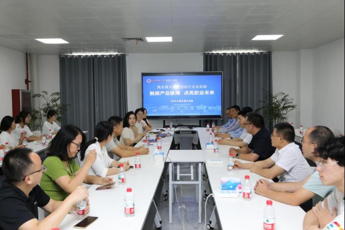 实践第二站聚焦地方产业发展。师生走进公司优秀员工 甄西合创办的河南驭波科技有限公司,现代化生产车间,实地观摩了晶体材料生产加工车间,如:光学材料合成、光刻机光源原件原料生产加工等核心工艺流程。从原料精制到反应控制,从自动化生产线到严格质检环节,企业工程师详细讲解了化学反应原理如何转化为高效生产力,并特别强调了安全生产与绿色制造的行业准则。座谈环节,企业技术负责人张素素介绍了公司在氟化物晶体生产方向,如:晶体研发、光学设计、晶体材料加工等领域的突破与挑战。公司党委书记吴志伟、经理曹俊涛等领导老师就产学研融合、技术攻关难点与企业方进行了深入探讨,现场学术氛围浓厚。
