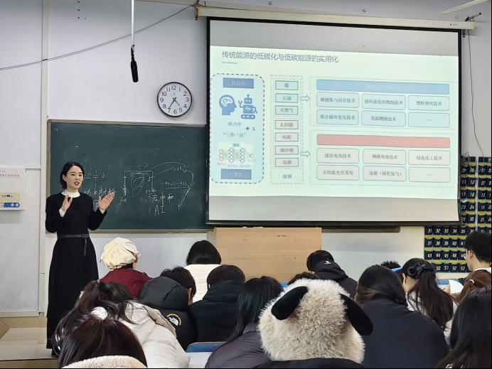 张钰以“化工的低碳智慧化转型:挑战与未来”为题,为同学们带来一场深入浅出的专业思想启蒙。从国家战略与产业发展的高度切入,紧扣新能源这一时代主题,系统梳理了化工新材料与绿色能源领域的前沿动态与核心问题。她指出,化工新材料是未来化学工业发展的关键方向,伴随新兴产业的蓬勃发展和材料性能的持续突破,行业对高素质专业人才的需求将日益迫切特别结合绿色可持续发展理念,强调环保型化工新材料已成为产业主流趋势,并鼓励新生主动将个人发展融入国家“双碳”战略和循环经济发展大局。她还细致剖析了应化、化工、材化类专业的广阔就业前景与多元发展方向,为新生规划大学学业、确立未来目标提供了清晰指引。