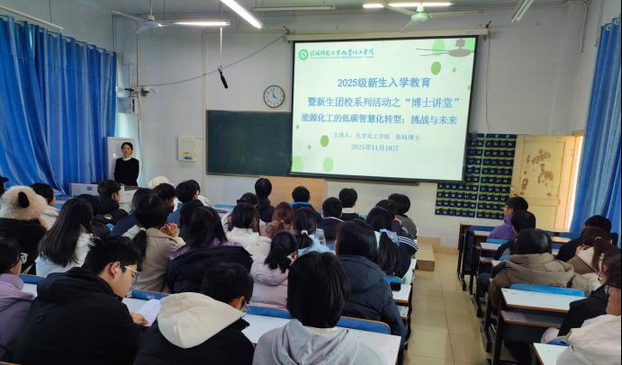 11月18日,betway西汉姆联平台在教九楼301教室开展2025级新生入学教育暨新生团校系列活动之“博士讲堂”,betway西汉姆联平台张钰博士主讲,公司团委书记赵方方主持,2025级应用化学、材料化学专业新生参与。