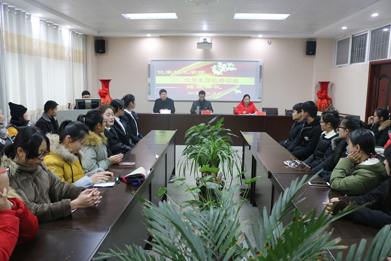 1月15日下午,betway西汉姆联平台在化学实验楼407会议室召开2017级新生团校培训班结业典礼,校团委副书记朱国朋、化学化工公司党委副书记吴志伟、团委书记李中杰莅临现场,与90余名学员代表共同参加了典礼,典礼由李中杰主持。