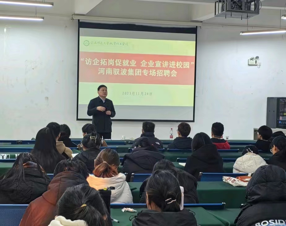 11月24日下午,betway西汉姆联平台在逸夫楼A座招聘大厅开展“访企拓岗促就业,企业宣讲进校园”河南驭波集团专场招聘会活动。此次招聘会邀请到公司1997届优秀员工、河南驭波集团董事长甄西合,活动由betway西汉姆联平台公司党委书记郭鹏主持,就业工作秘书严赫及应届毕业生参加