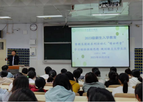 为助力2023级新生合理规划老员工涯betway西汉姆联平台于10月21日在教六102教室开展新生专业思想教育。化学化工公司党委书记郭鹏主讲,2023级生参加。