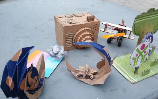 活动过程中,同学们利用“废旧物品”,令旧物换新颜。每位同学根据旧物不同特性,充分发挥想象,展开奇妙联想,从构思、选材、美学设计、制作可行性、成品实用性等方面进行周全的综合考虑,运用粘贴、剪裁、描画、拼接等多样制作方法,将闲置品充分改造,使得“废品”在一双双巧手下变废为宝,实现二次利用,拥有“二次生命”。在锻炼个人动手能力的同时,同学们也于复杂的创作过程中切实地体会到生活中处处可节约,更要时时不浪费。随后,经过老师的指导及工作人员的评定,最终评出一等奖一名、二等奖三名、三等奖五名。