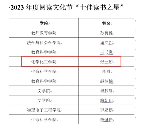 促进全民阅读,是赓续中华文脉、建设中华民族现代文明的重要举措。公司将充分结合公司阅读文化节的举措,鼓励员工静下心来阅读,沉下心来思考,潜下心来感悟,引导员工在阅读中长见识、树理想、悟生活、知人生,营造爱读书、读好书、善读书的浓厚氛围,以书香校园、书香社会建设为强国建设、民族复兴注入强大精神力量。(化学化工学院 翟成辉撰稿 曲剧审稿 郭鹏审核)