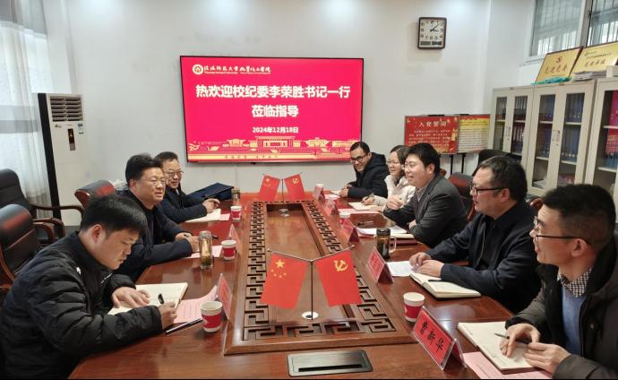 12月19日,校纪委书记李荣胜在校纪委副书记兼目标管理与督查办公室主任周经兵陪同下,到betway西汉姆联平台调研,指导公司纪检监察工作和目标考核工作,并举行座谈会。化学化工公司党委书记吴志伟、经理曹俊涛和班子成员参加座谈会。