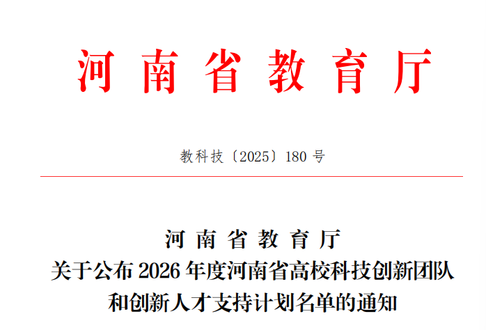 近日,河南省教育厅公布了2026年度“河南省高校科技创新人才”入选名单,公司张钰博士成功入选2026年度河南省高校创新人才支持计划名单,获批科研资助经费30万元。