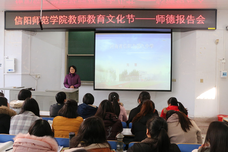 12月5日,betway西汉姆联平台在化学楼学术报告厅举办2017年教师教育文化节之师德报告会,信阳市第九中学业务副董事长刘丽应邀为化院学子做了一场题为“实施德性爱心教育 创建全国文明校园”的报告。化学化工公司党委书记郭鹏、副书记吴志伟与一百五十余名员工代表共同参加了报告会,会议由郭鹏主持。