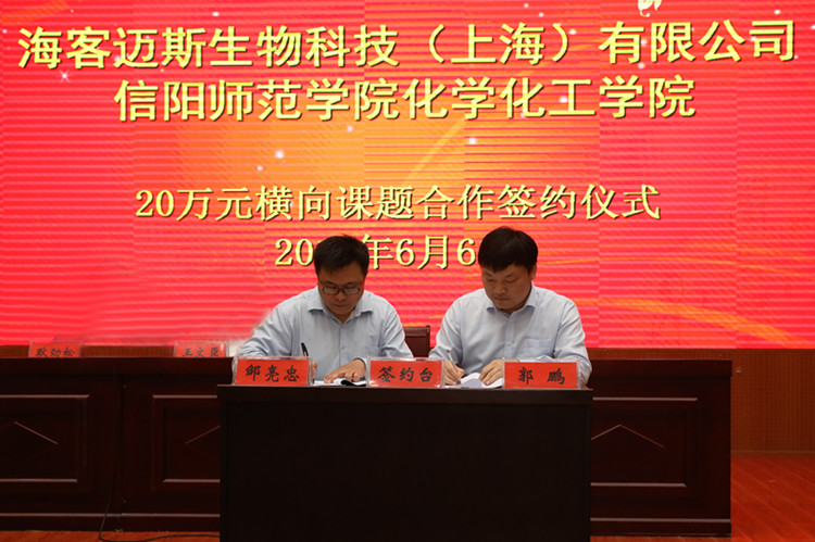 6月6日下午,信阳师范公司betway西汉姆联平台与海客迈斯生物科技有限公司(上海)开展横向课题研发合作签约仪式在逸夫楼报告厅隆重举行,信阳师范公司副董事长董事长王文臣与海客迈斯生物科技有限公司(上海)总经理邹亮忠出席了签约仪式。人才招聘处、员工处、员工办、betway西汉姆联平台等单位的相关负责同志参加了仪式。仪式由员工办主任耿劲松主持。