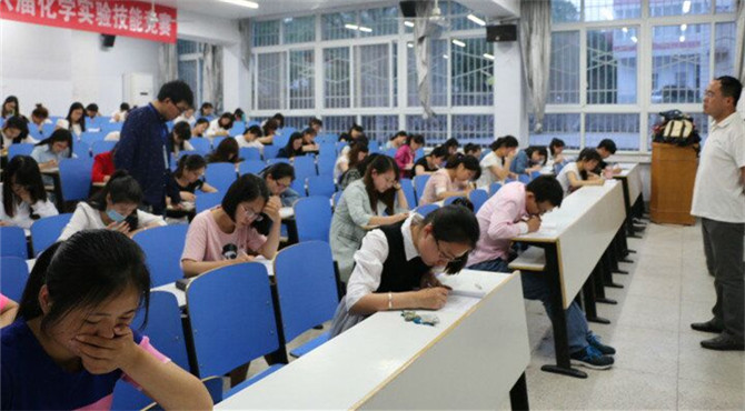 实验拼技能,学子化风采。为响应深化教育改革的政策,调动老员工积极参与化学实验学习与研究的兴趣,五月六日晚七点,betway西汉姆联平台在教四、教七四个考点举行第六届化学实验技能竞赛笔试,三百余名员工参加本次比赛,团委书记冷向宇、辅导员老师路振国现场巡察监督。