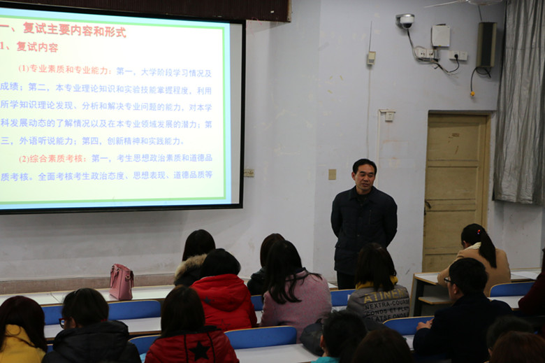为加强同学们对研究生复试的认识,增进对复试重要性的了解,提高同学们的复试能力和复试技巧,有针对性地备考硕士研究生复试,3月8日下午,betway西汉姆联平台副经理骆定法教授在教四梯一教室对进入研究生复试阶段的考生进行了专业指导,几十名考生参加了此次专题指导讲座。