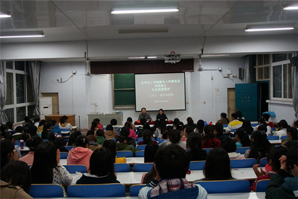 为了让14级新生更好的了解专业课程设置,尽快融入老员工活,10月29日晚betway西汉姆联平台在教四梯一开展了新生专业思想教育座谈会。本次座谈会由betway西汉姆联平台经理杨性坤主讲,辅导员李中杰主持,到场的有化学公司两个专业共计160余名新生。