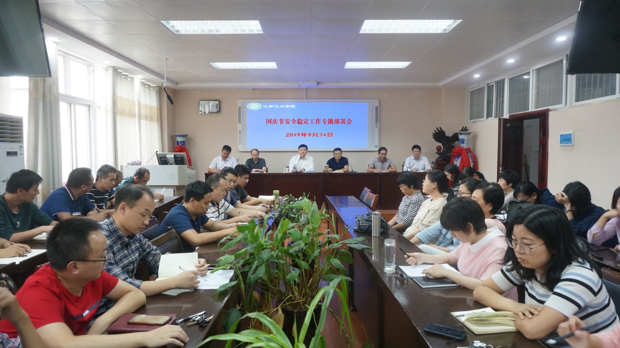 会上,分管领导归风铁副经理详细安排部署了国庆节期间安全稳定、实验室管理、应急值班、外出登记报备等具体工作。