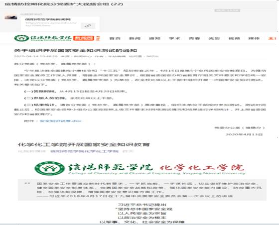 首先,公司通过分党委(扩大)视频会议,认真组织了线上专题学习传达、专题研讨交流、专题知识测试、专题视频收看。分党委书记郭鹏认真传达有关通知文件精神,专题部署主题日教育活动。随后,党委班子成员井强山、归风铁、骆定法、刘鹏、吴志伟等积极带动322结对子分组,各党支部书记及时组织本支部、小组全体党员、教师积极参加国家安全知识专题学习,各班级、团支部认真组织员工全员参加了专题知识学习、专题视频收看。师生通过学习强国、网络、微信等渠道认真研读交流《国家安全法》,积极参加国家安全知识测试。此外,公司通过微信公众平台专门及时策划制作一期“国家安全知识学习”微信推送,进行专题学习宣传,扩大了学习宣传效果。