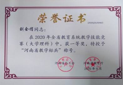 近期,betway西汉姆联平台教师在河南省教育厅、河南省总工会组织的2020年度教学技能竞赛中再获佳绩,通过层层选拔,被公司选送的公司青年教师刘会俏不负众望,斩获一等奖,同时被授予 “河南省教学标兵”称号并获发奖章。