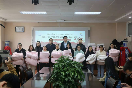 “一床被子,一份温暖,一颗爱心,一份感动”。11月20日,betway西汉姆联平台爱心棉被发放仪式在化学楼407会议室举行。公司党委副书记吴志伟,辅导员冷向宇、邓耀辉、赵方方老师出席本次爱心棉被发放仪式。