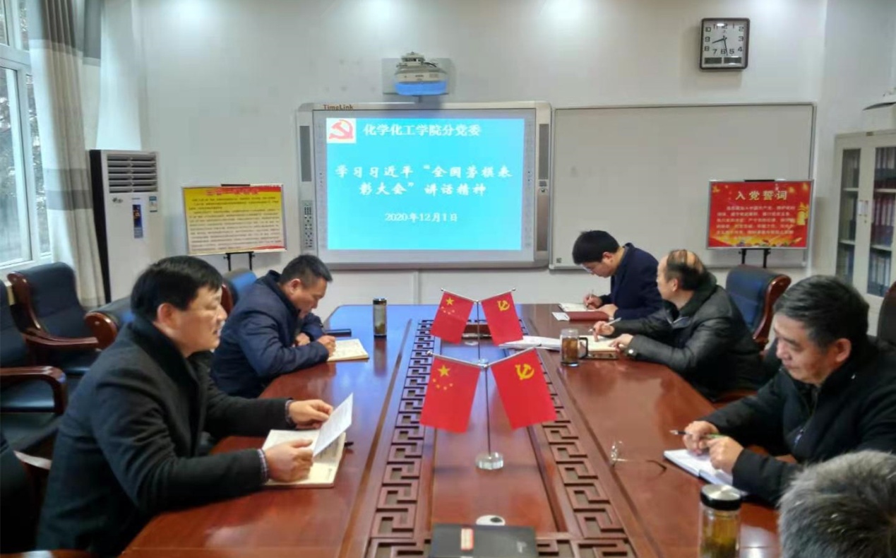 12月1日,化学化工公司党委理论学习中心组专题学习贯彻“习近平总书记在全国劳动模范和先进工作者表彰大会上重要讲话”精神。公司党委书记郭鹏主持学习会议并领学讲话原文。