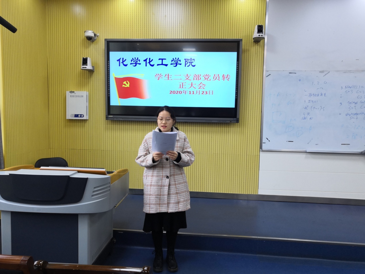 会上,提出转正申请的预备党员依次向党组织汇报了预备考察期间本人在思想认识、专业学习、生活情况等方面的表现。与会党员发表意见,对各预备党员能否转正进行讨论,随后逐一进行无记名投票表决。经表决,赵蜜甜等45位预备党员按期转为中共正式党员。这些同志纷纷表示将继续以党规党章严格要求自己,坚定政治信念,明确努力方向,积极发挥党员的先锋模范作用。