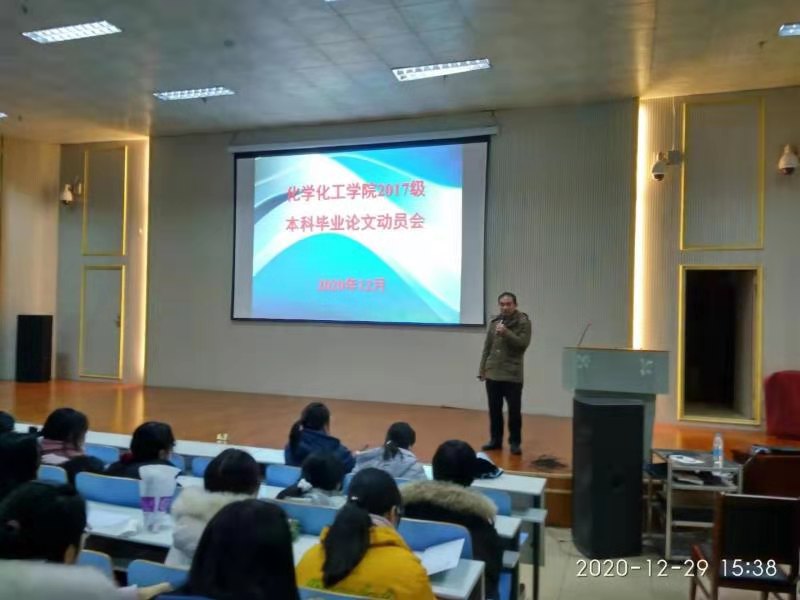 1229日,公司在人文楼报告厅召开了2017级本科毕业论文动员会。副经理骆定法、党委秘书冷向宇、毕业班班主任出席了动员会,2017级全体同学参会,会议由冷向宇主持。