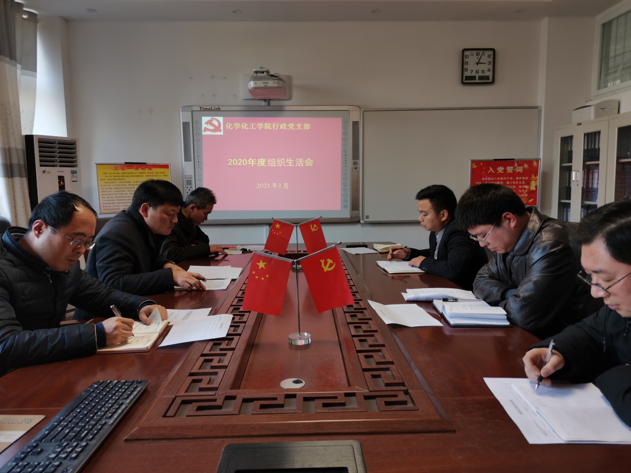 2021年1月12日,行政支部在化学实验楼313党员之家开展2020年度组织生活会。会议由党支部书记孙俊永主持。党委书记郭鹏以普通党员身份参加组织生活会。
