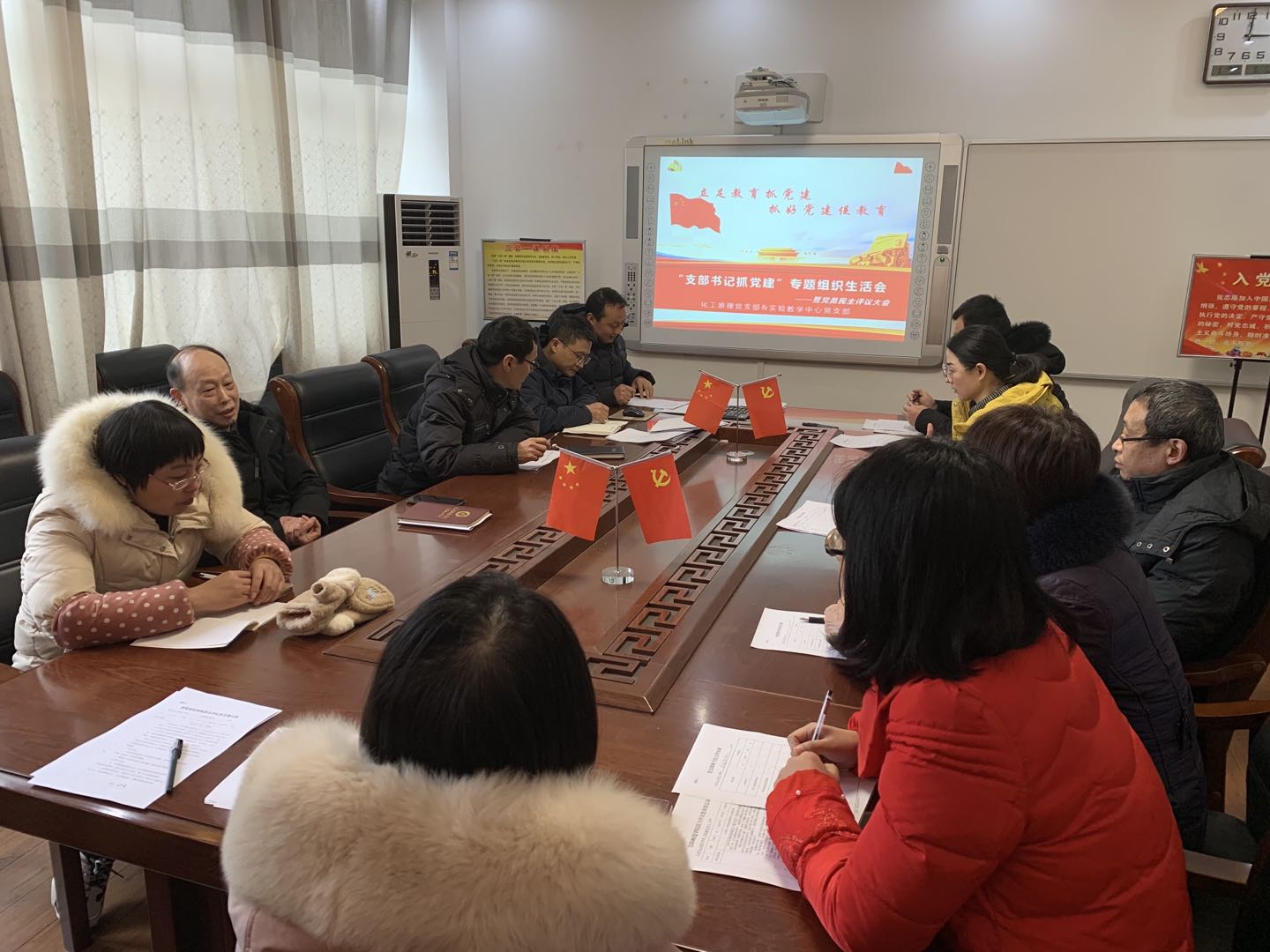党支部书记于永生带领大家学习了《中国共产党支部工作条例》,与会同志逐个发言,严格对照“五个方面”,坚持把自己摆进去、把职责摆进去、把工作摆进去,深入查找不足,深刻剖析根源,认真开展严肃的批评和自我批评。然后支部委员和其他与会党员也分别对照自身的党务和教学工作进行了自我剖析和互评。